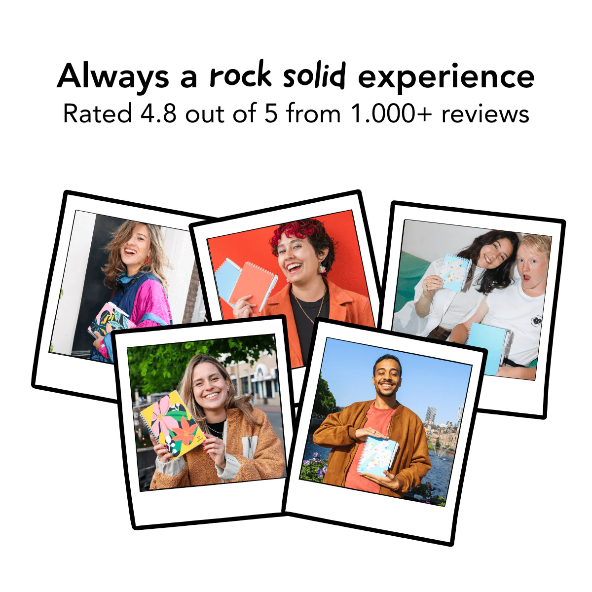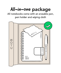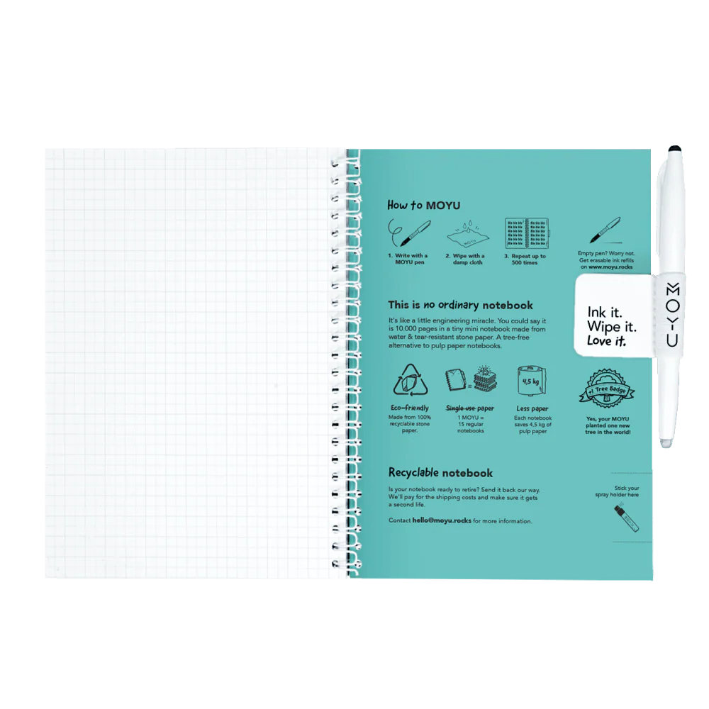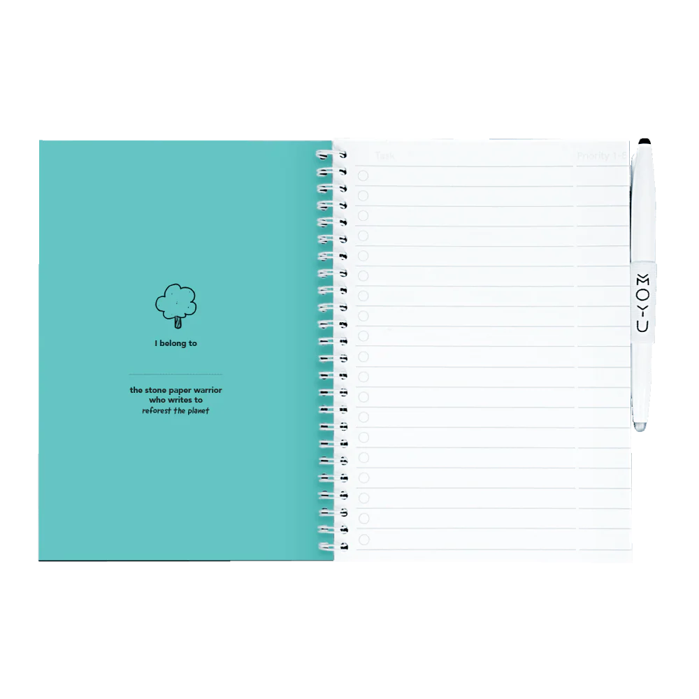 A reusable notebook made from tree-free stone paper. Perfect for those who want the real pen-on-paper writing experience in a premium, sustainable notebook that helps reduce paper waste and lasts for years.