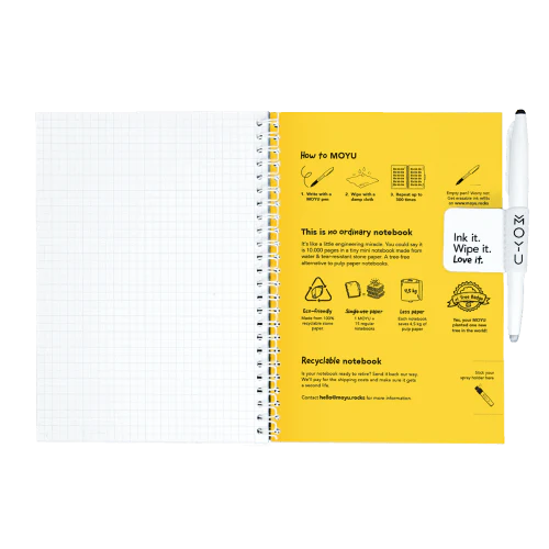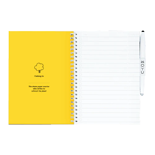 A reusable notebook made from tree-free stone paper. Perfect for those who want the real pen-on-paper writing experience in a premium, sustainable notebook that helps reduce paper waste and lasts for years.