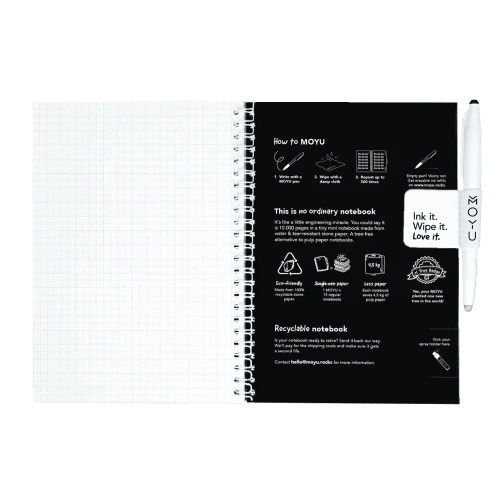 Unlike conventional notebooks, the MOYU can be reused over 500 times. Simply write, wipe clean, and repeat. It’s the ideal solution for professionals, students, and businesses looking to reduce waste without compromising on design or usability.