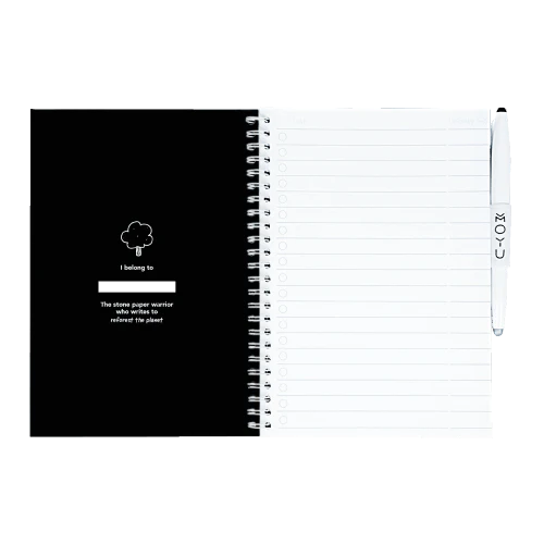 Need a sustainable, reusable notebook that reflects your brand values? The MOYU Erasable Notebook A5 – Pitch Black offers a smart, eco-conscious alternative to traditional stationery. Crafted from 100% recycled limestone, this durable, waterproof A5 notebook is tree-free, bleach-free, and endlessly reusable—making it the future of sustainable corporate gifting.