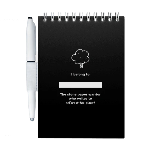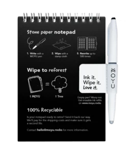 Need a sustainable, reusable notebook that reflects your brand values? The MOYU Erasable Notepad A6 – Pitch Black offers a smart, eco-conscious alternative to traditional stationery. Crafted from 100% recycled limestone, this durable, waterproof A5 notebook is tree-free, bleach-free, and endlessly reusable—making it the future of sustainable corporate gifting.