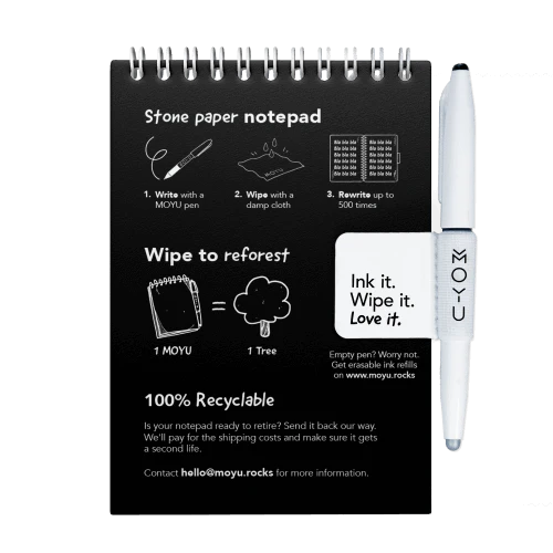 Unlike conventional notebooks, the MOYU can be reused over 500 times. Simply write, wipe clean, and repeat. It’s the ideal solution for professionals, students, and businesses looking to reduce waste without compromising on design or usability.